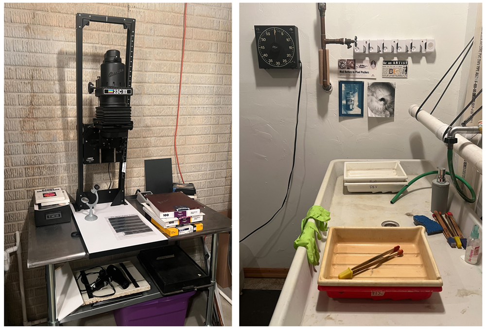 The Experimental Photo Kitchen is located in Gnaw Bone, Indiana, 6 miles east of the historic town of Nashville. It consists of several spaces in and around the basement of Bridget’s home. Expansion into the adjacent barn (where a gang darkroom is currently being built) will be completed later in 2026. Specific directions and parking instructions are provided upon registration.